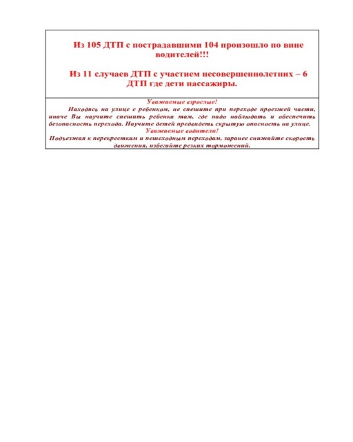 Помните, что ответственность за жизнь и здоровье детей лежит, прежде всего, на нас, взрослых. Не уставайте напоминать им о необходимости соблюдения Правил дорожного движения. Очень важно уже в раннем возрасте заложить основы сознательного отношения к соблюдению Правил безопасности на дорогах. И не забывайте, что вы являетесь для своих детей образцом поведения. Никакое обучение не будет эффективным, если самые близкие люди, которые пользуются у детей особым авторитетом, нарушают Правила.