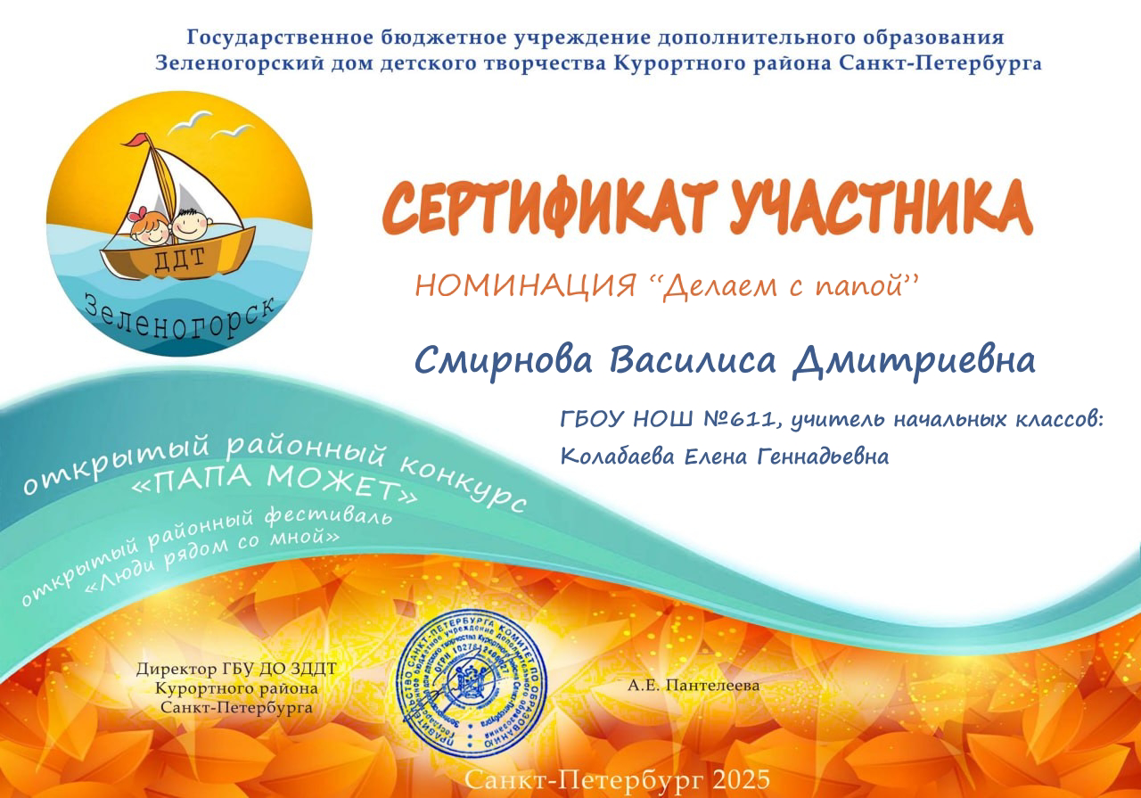 Носову Алису ученицу 2 А класса с 3 местов в районном этапе регионального творческого конкурса среди воспитанников и обучающихся образовательных организаций Санкт-Петербурга «Россия: прошлое, настоящее и будущее»